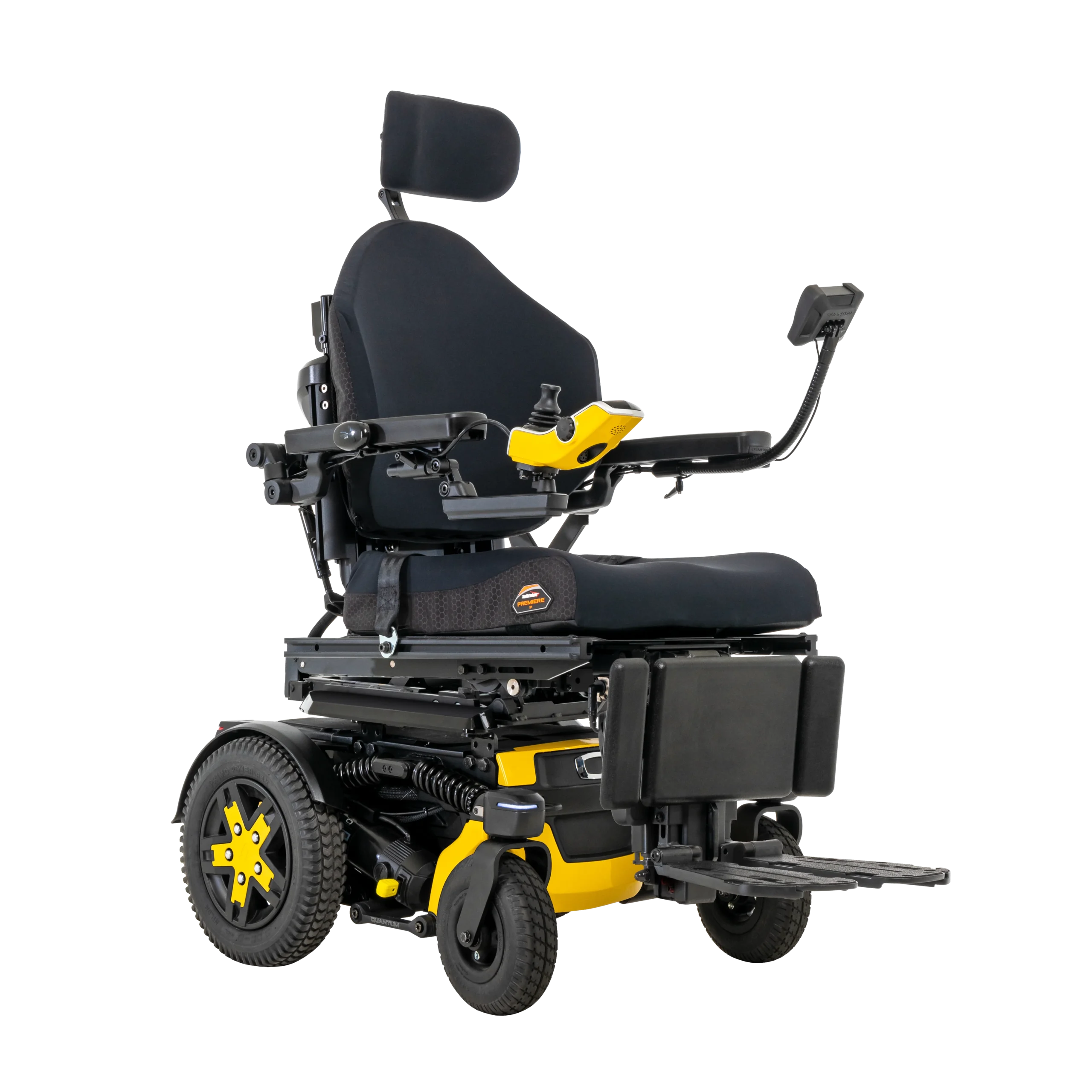 The R-TRAK power base combines the stability of a rear-wheel drive chair with unmatched comfort and smooth ride performance. Its Smooth Ride Suspension (SRS) and optimised centre of gravity provide stability and effortless obstacle transitions. With a narrow 615 mm base for greater manoeuvrability and optional 10″ Safe Seat Elevation at speeds up to 3,5 mp/h, the R-TRAK offers versatility for everyday use. Available with TRU-Balance or contoured seating, integrated LED lights, and multiple colour options, it delivers a premium driving experience.