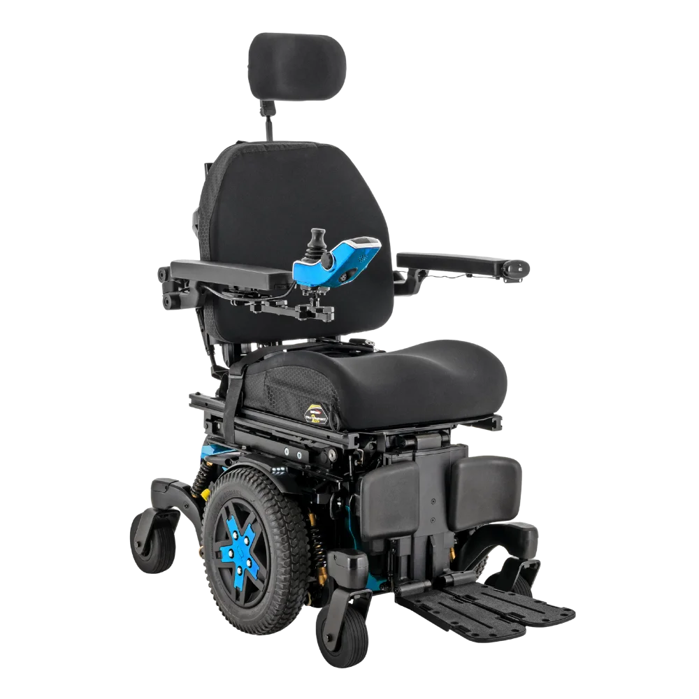 The Edge 3 Stretto is Quantum Rehab’s narrowest and most manoeuvrable powerchair, ideal for children, teenagers, and small adults. With a width of 52 cm and optional 25 cm iLevel seat elevation at speeds up to 5,6 km/h, it offers easy navigation in tight spaces. Independent Smooth Ride Suspension (SRS) ensures comfort and shock absorption, while integrated USB charging and LED fender lights add convenience and safety. Designed for daily use with optional TRU-Balance seating and advanced tracking technology, the Stretto sets a new standard in paediatric power mobility.