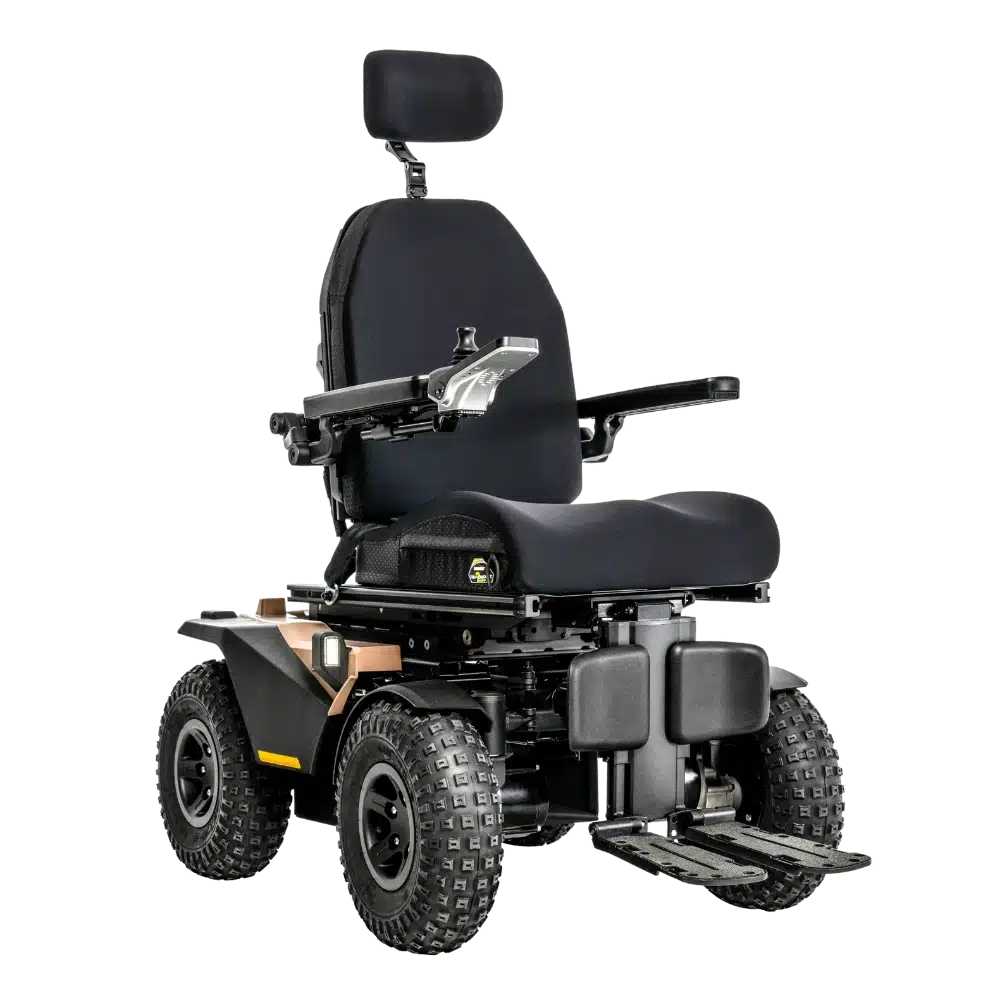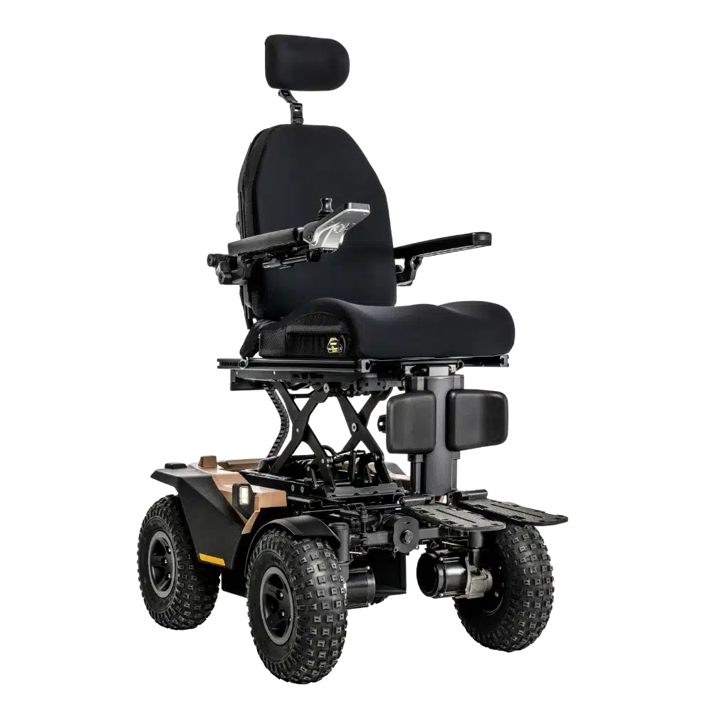The Quantum Outback is a rugged 4×4 all-terrain powerchair built for outdoor adventure. Featuring 4-pole motors, Smooth Ride Suspension, and advanced stability, it handles wooded trails and uneven terrain with ease. Optional 25 cm power-adjustable safe seat elevation lets you drive safely at up to 5 km/h while elevated. With a full LED lighting package, backup camera, and new camo colour options, the Outback combines performance, safety, and style for the ultimate outdoor mobility experience.